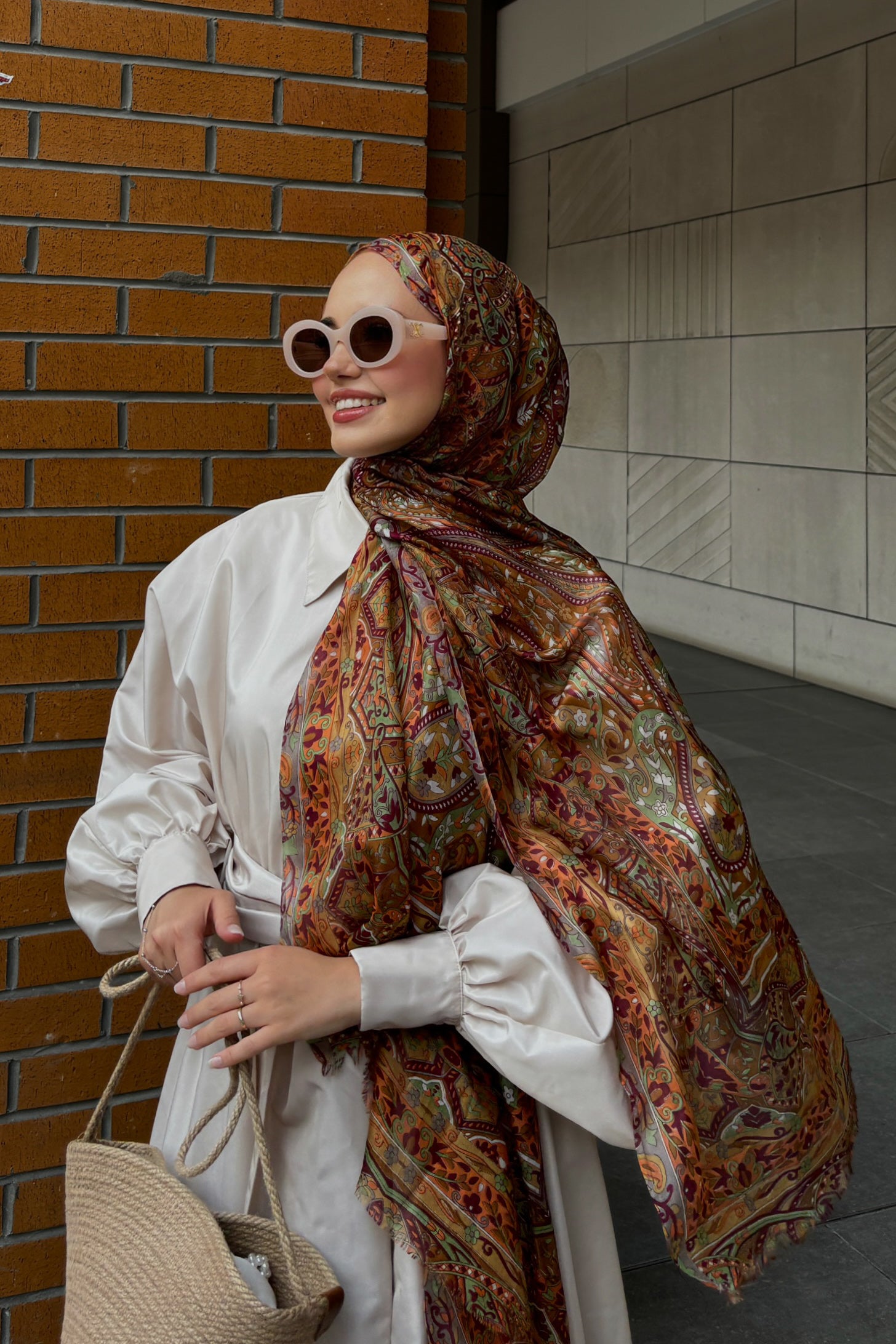 Hint İpeği Şal Dream Desen Hardal&Kahve