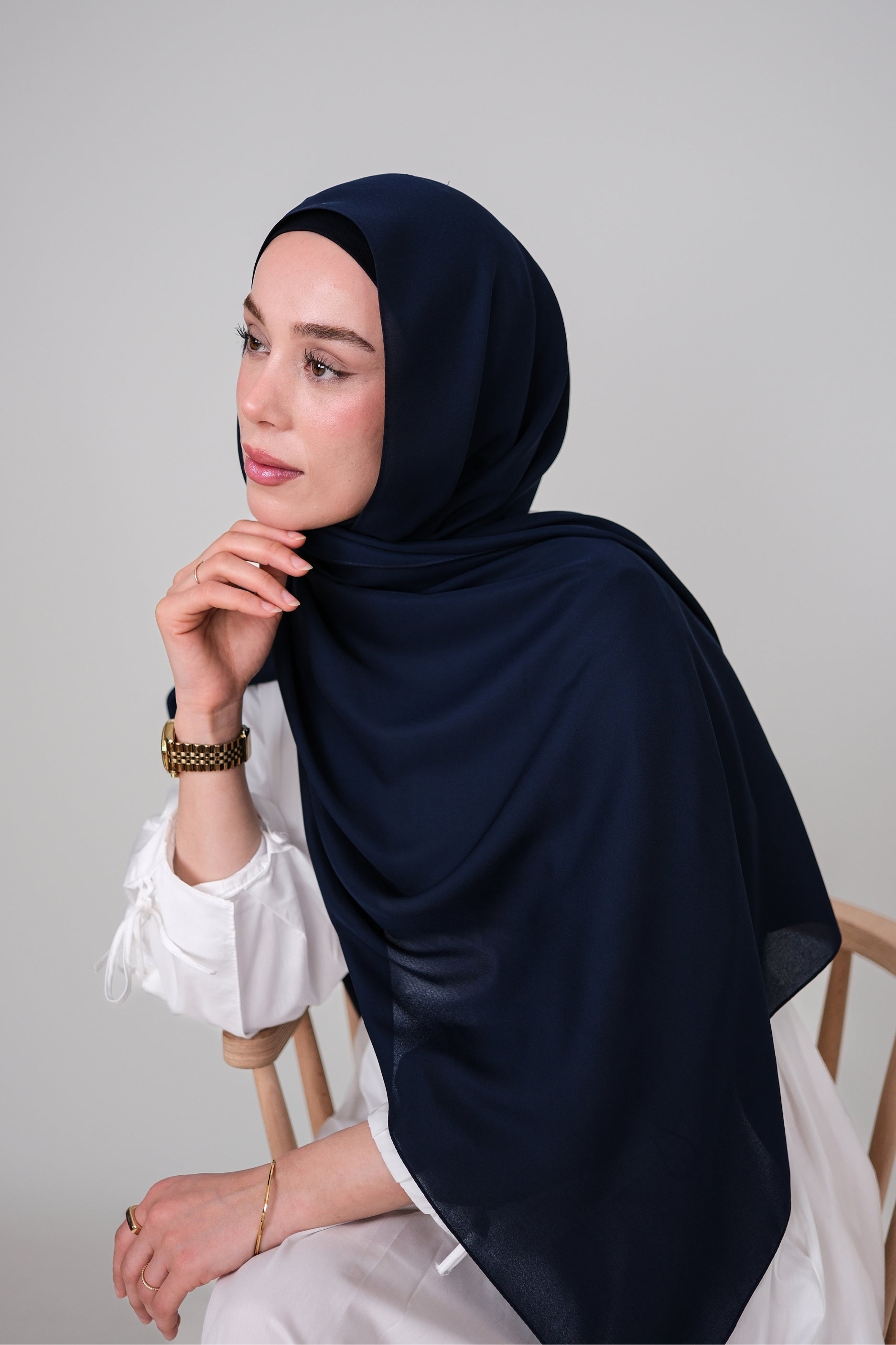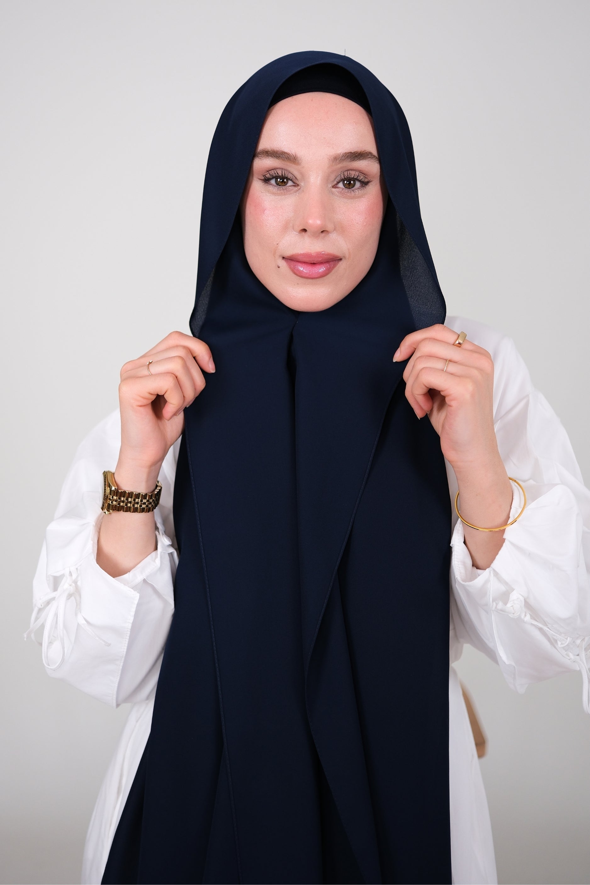 Mıknatıslı Ve Boneli Şifon Şal - Lacivert