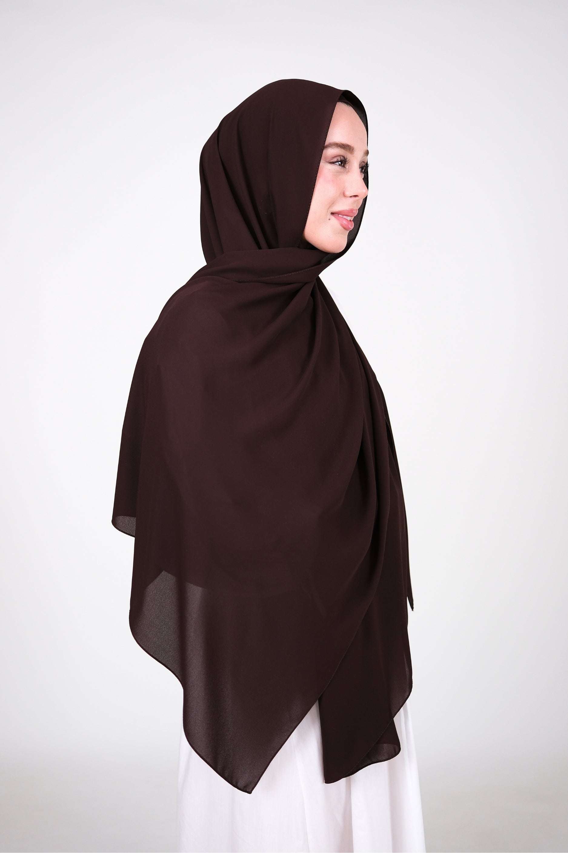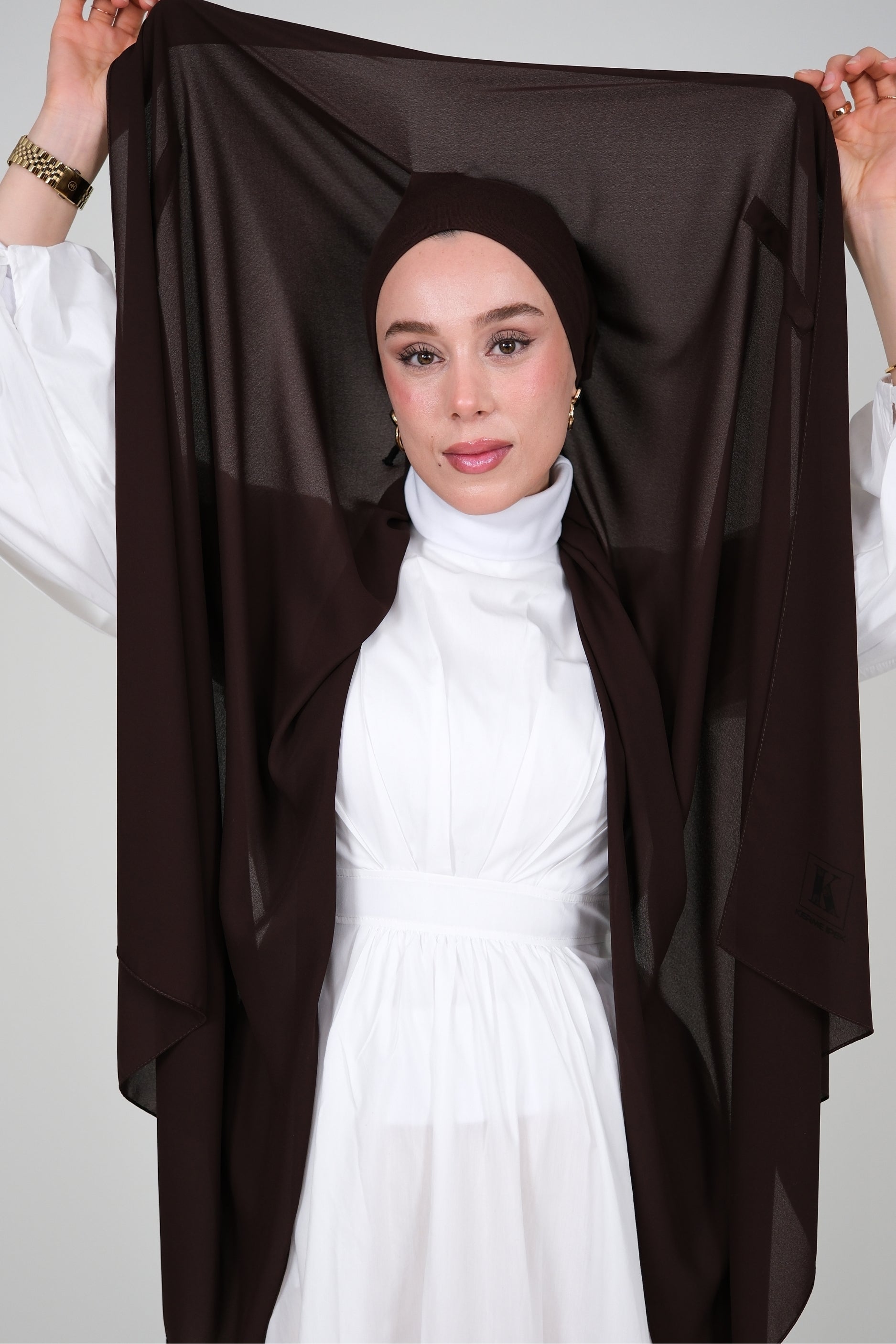 Mıknatıslı Ve Boneli Şifon Şal - Acı Kahve