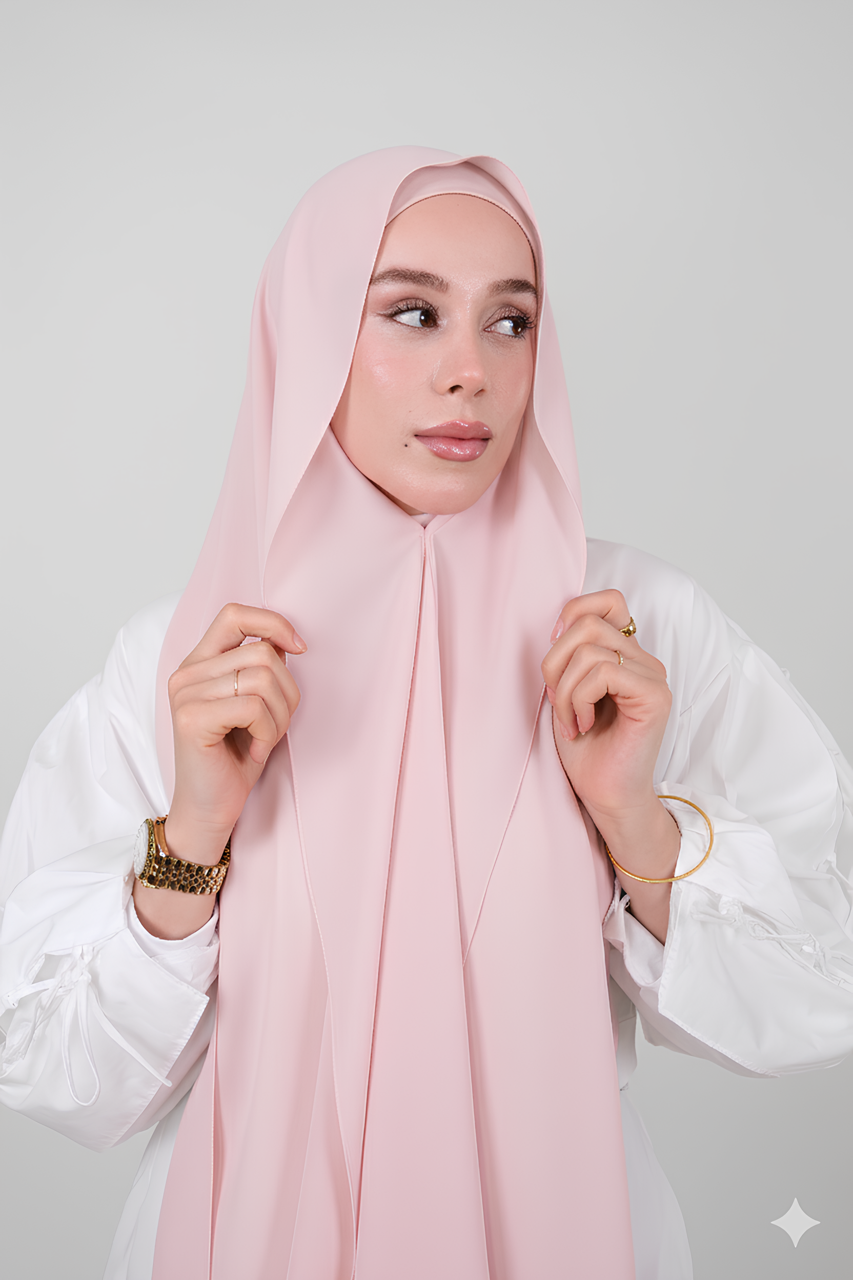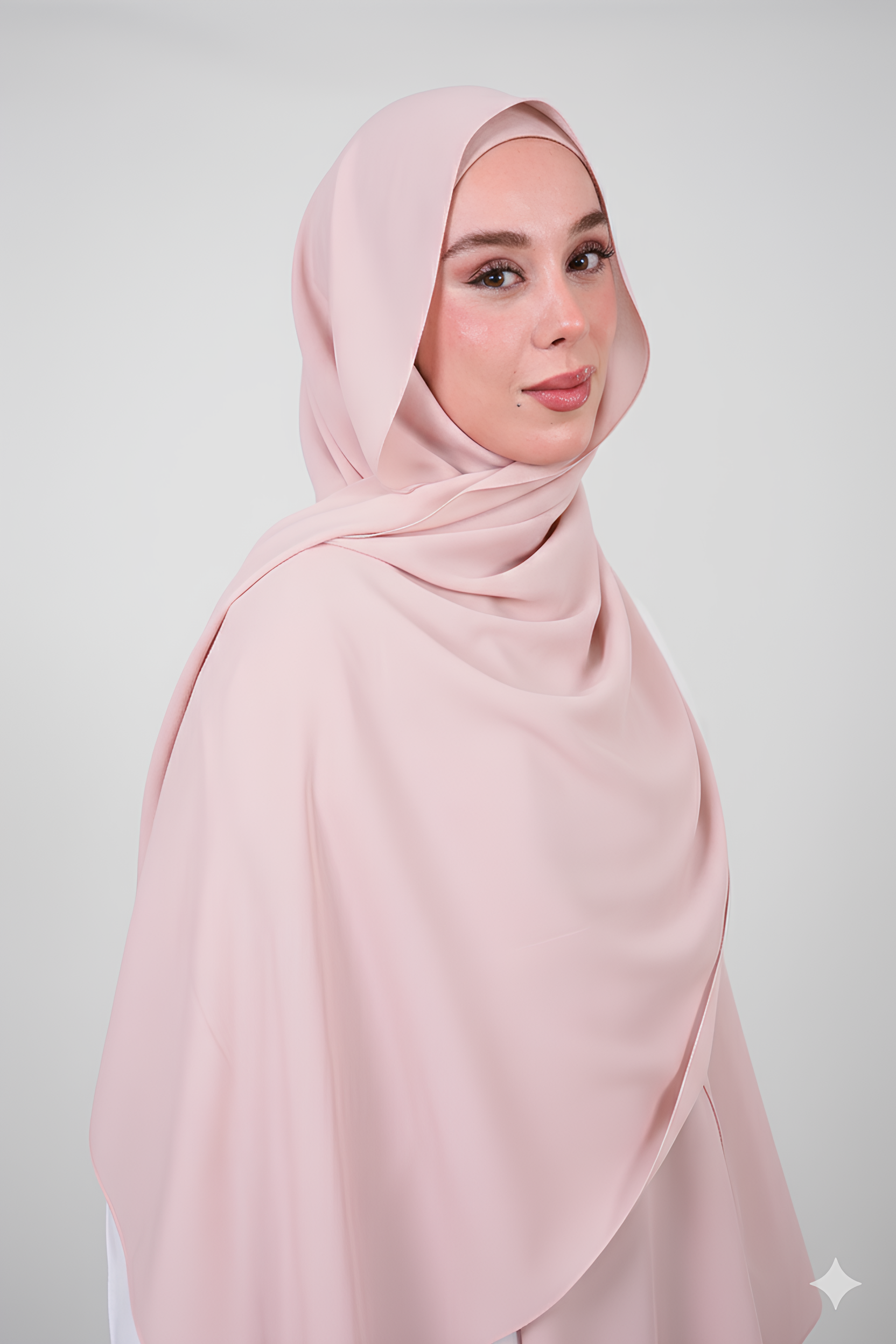 Mıknatıslı Ve Boneli Şifon Şal - Pudra Pembesi
